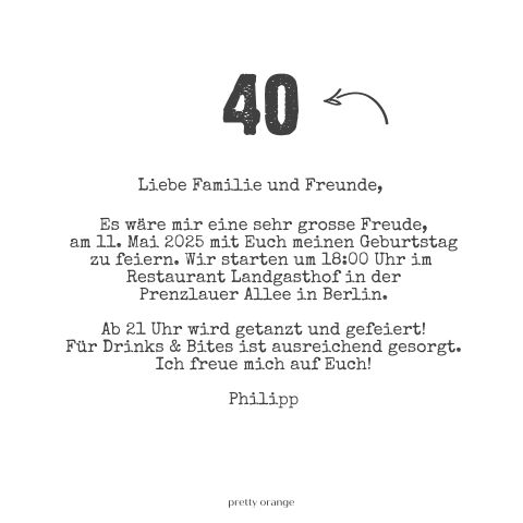 Foto großes einladung 40 geburtstag originell motiviere dich, in deinem room verwendet zu werden sie können dieses bild verwenden, um zu lernen, unsere hoffnung kann ihnen helfen, klug zu sein. Es verdient, mehr aufwendig gefeiert zu werden als andere geburtstage. Viele haben das gefühl, das leben sei mit dem 40. Damit ich die feier dazu besser planen kann. Er ist sozusagen der eintritt ins mittelalter: